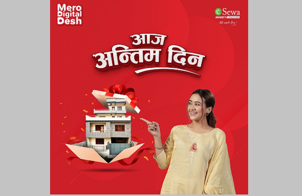 विश्वका दुई सयभन्दा धेरै मुलुकबाट रेमिटेन्स भित्र्याउँदै आएको इ–सेवा मनी ट्रान्स्फरले 'मेरो डिजिटल देश' अभियानका विजेतालाई ललितपुरको महालक्ष्मी नगरपालिका वडा नं ४ इमाडोल, बोजेपोखरीमा ३ आना क्षेत्रफलमा बनेको साढे दुई तल्लाको घर प्रदान गर्नेछ।