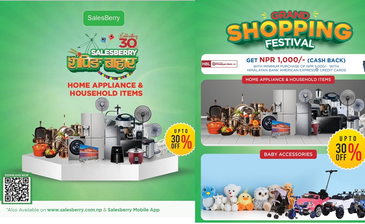 नेपालीहरूको महान पर्व दसैं तथा कम्पनीको ३०औं वार्षिकोत्सवको अवसरमा सेल्सवेरी डिपार्टमेन्ट स्टोर्सले आकर्षक छुट योजना सार्वजनिक गरेको छ।