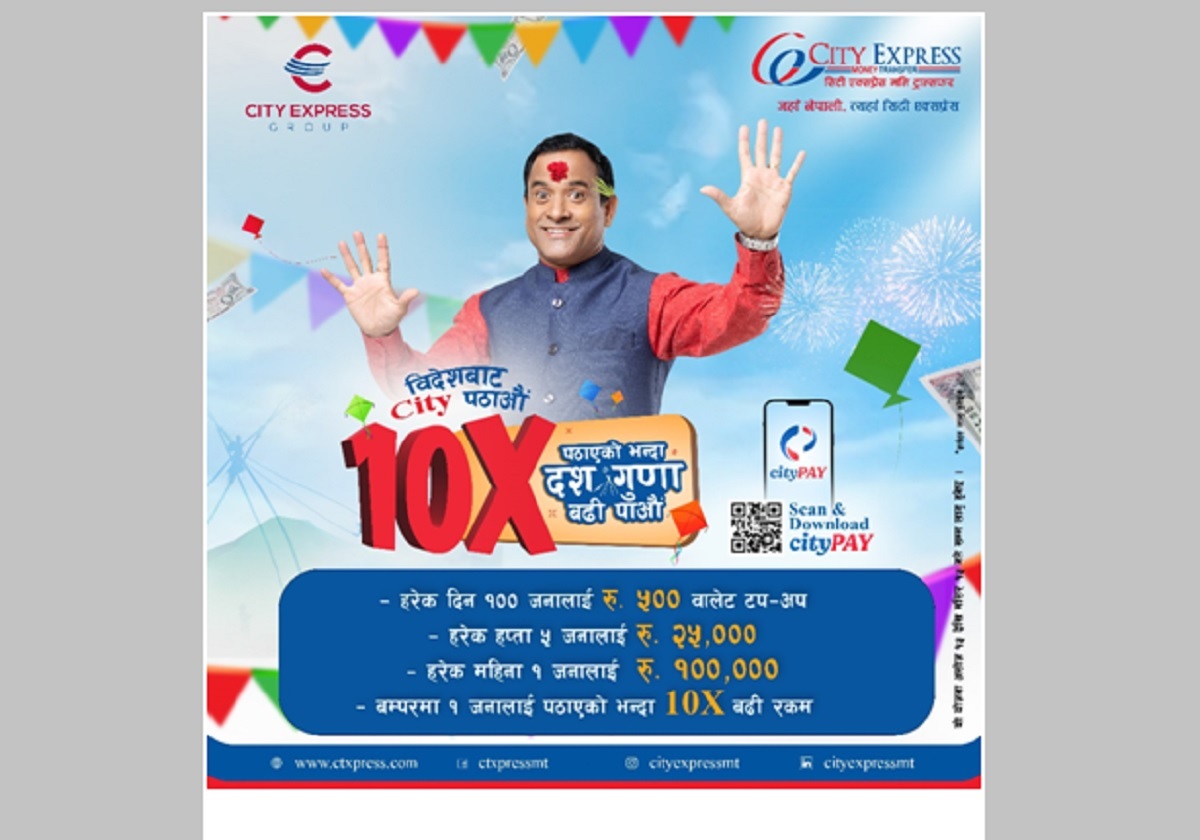 सिटी एक्सप्रेसले नेपालीहरूको महान चाड दसैं, तिहार र छठ पर्वलाई लक्षित गर्दै आफ्ना ग्राहकहरूसँग पर्वको खुशी साट्न उक्त उपहार योजना घोषणा गरेको थियो।