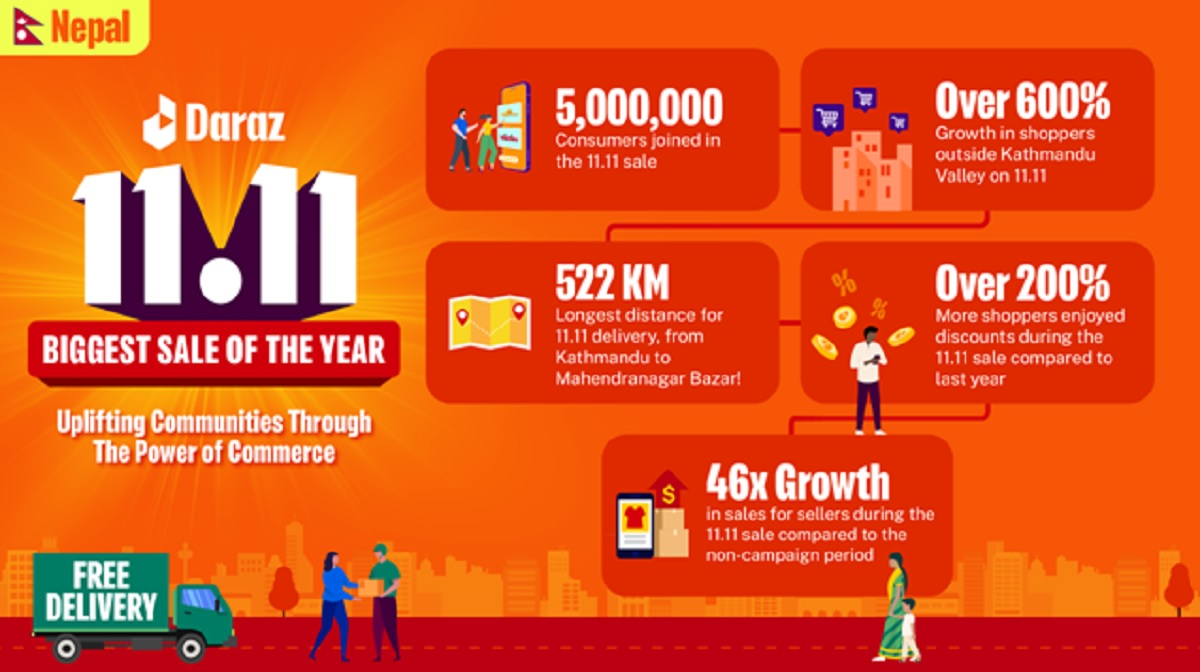 कम्पनीका अनुसार वाणिज्यद्वारा नेपाली समुदायहरूलाई उत्थान गर्ने उद्देश्यले सुरू भएको यो वर्षको ११:११ सेलमा ५० लाख ग्राहकहरूले दराजबाट सामान खरिद गरेका छन्।