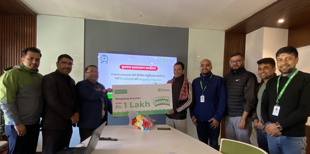 इसेवाको मेगा लिंक मेनिया अफर अन्तर्गत बैंक वा सहकारी खाता इसेवामा लिंक गरी कारोबार गर्दा प्रनिश अधिकारीले एक लाख रूपैयाँको सपिङ भौचर जित्न सफल भएका छन्।