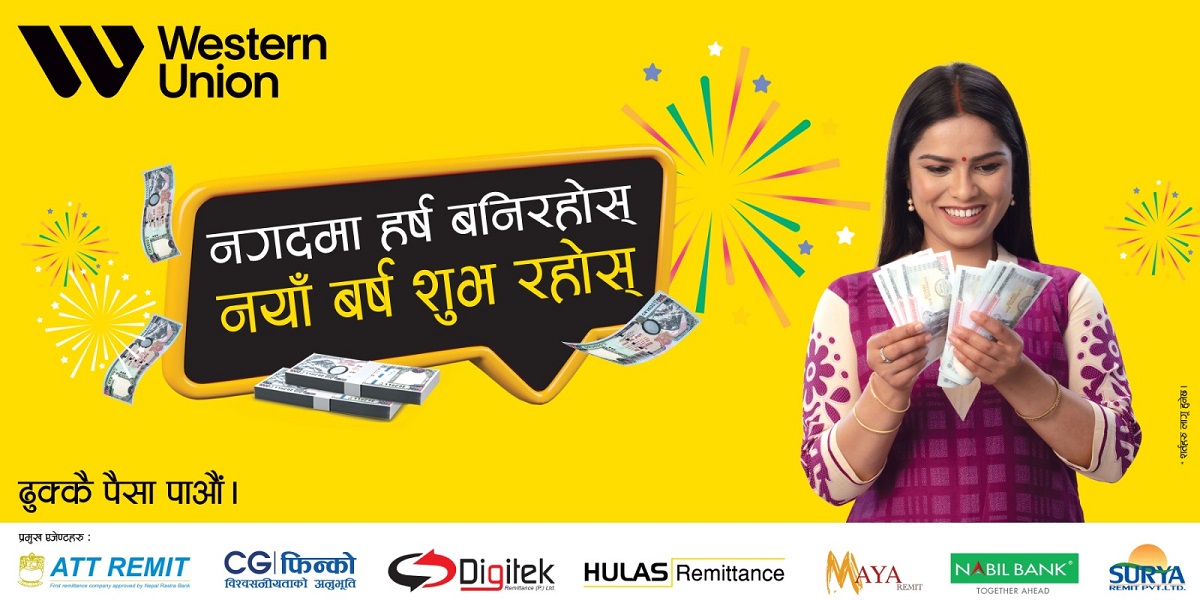 वेस्टर्न युनियन मनी ट्रान्सफरले नयाँ वर्षको अवसरमा 'नगदमा हर्ष बनिरहोस्, नयाँ वर्ष शुभ रहोस्' अभियान ल्याएको छ।