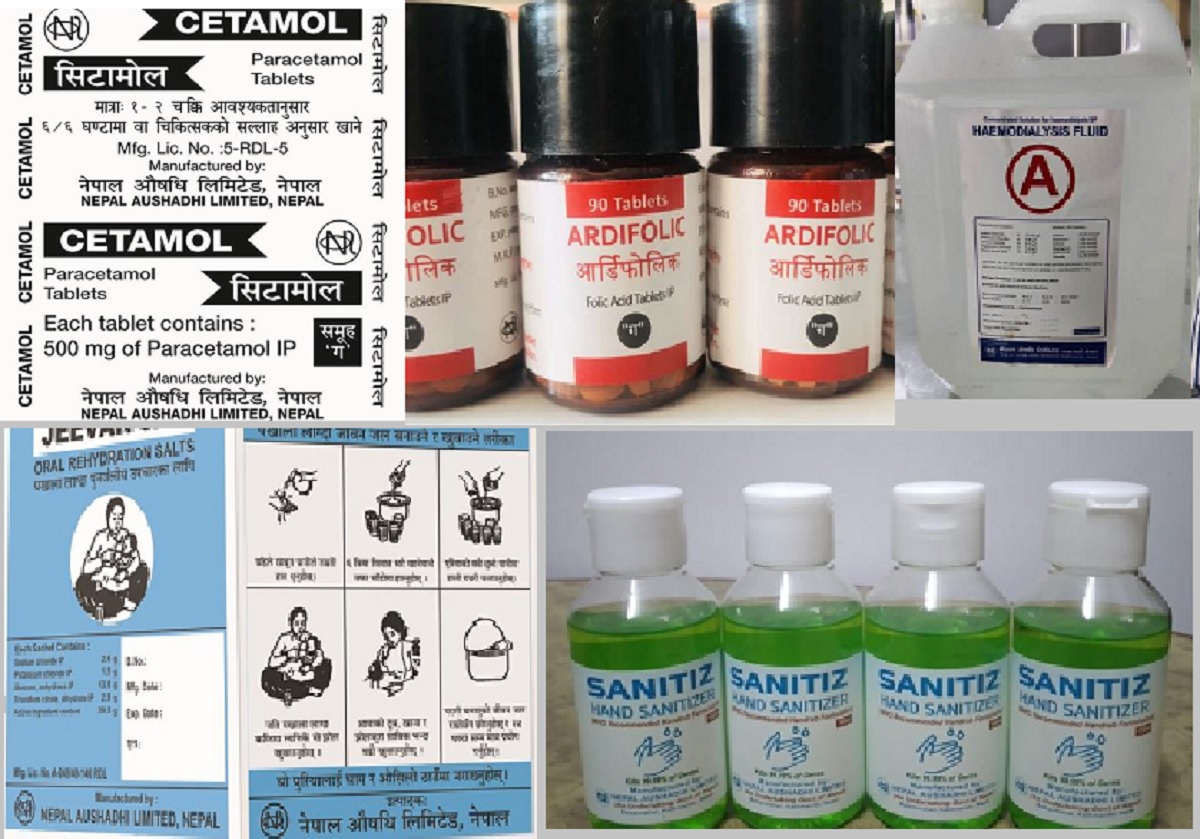 लिमिटेडले सिटामोल, जीवनजल, फोलिक एसिड, ग्लिसिरिन, डिस्ट्रिल वाटर, स्यानिटाइजर र हेमाडायलासिसका दुई प्रकारका औषधि उत्पादन गर्दै आएको छ।