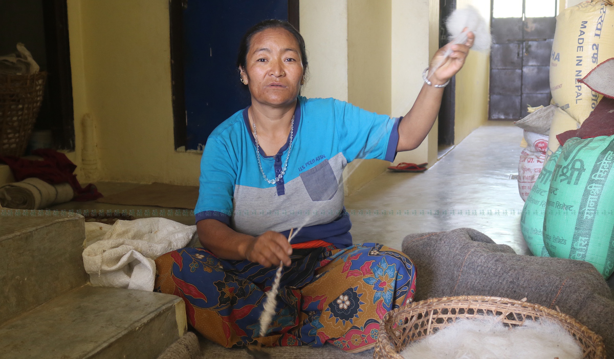 उनी भेडाको ऊन किनेर ल्याउँछिन्। आफै धागो बनाउँछिन् र आफै कम्मल बुन्छिन्।