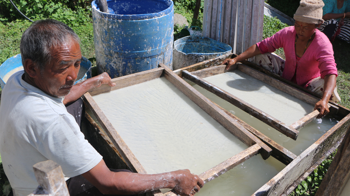 फुङ्लिङ नगरपालिका-६ का पासाङ लाक्पा शेर्पाले नेपाली कागज बनाउन थालेको २० वर्ष भयो।