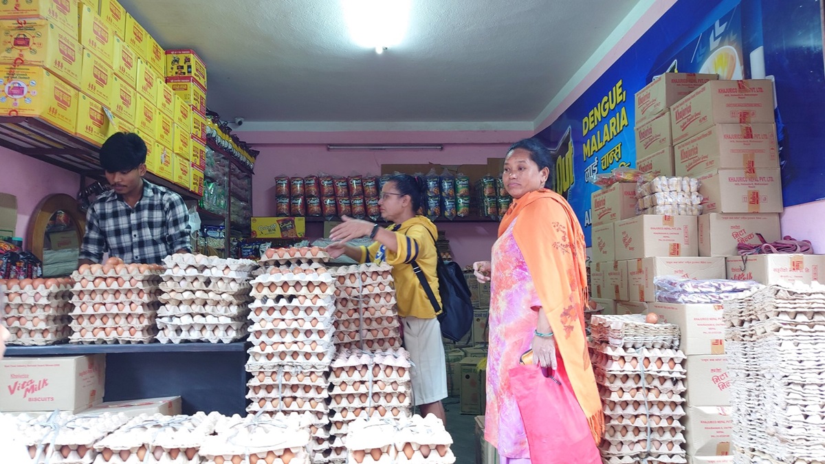 'अण्डाको मूल्य आकार अनुसार फरक हुन्छ,' उनले भने, 'त्यो पनि पसल अनुसार फरक छ। खुद्राको तुलनामा होलसेलमा अलि सस्तो हुन्छ।'