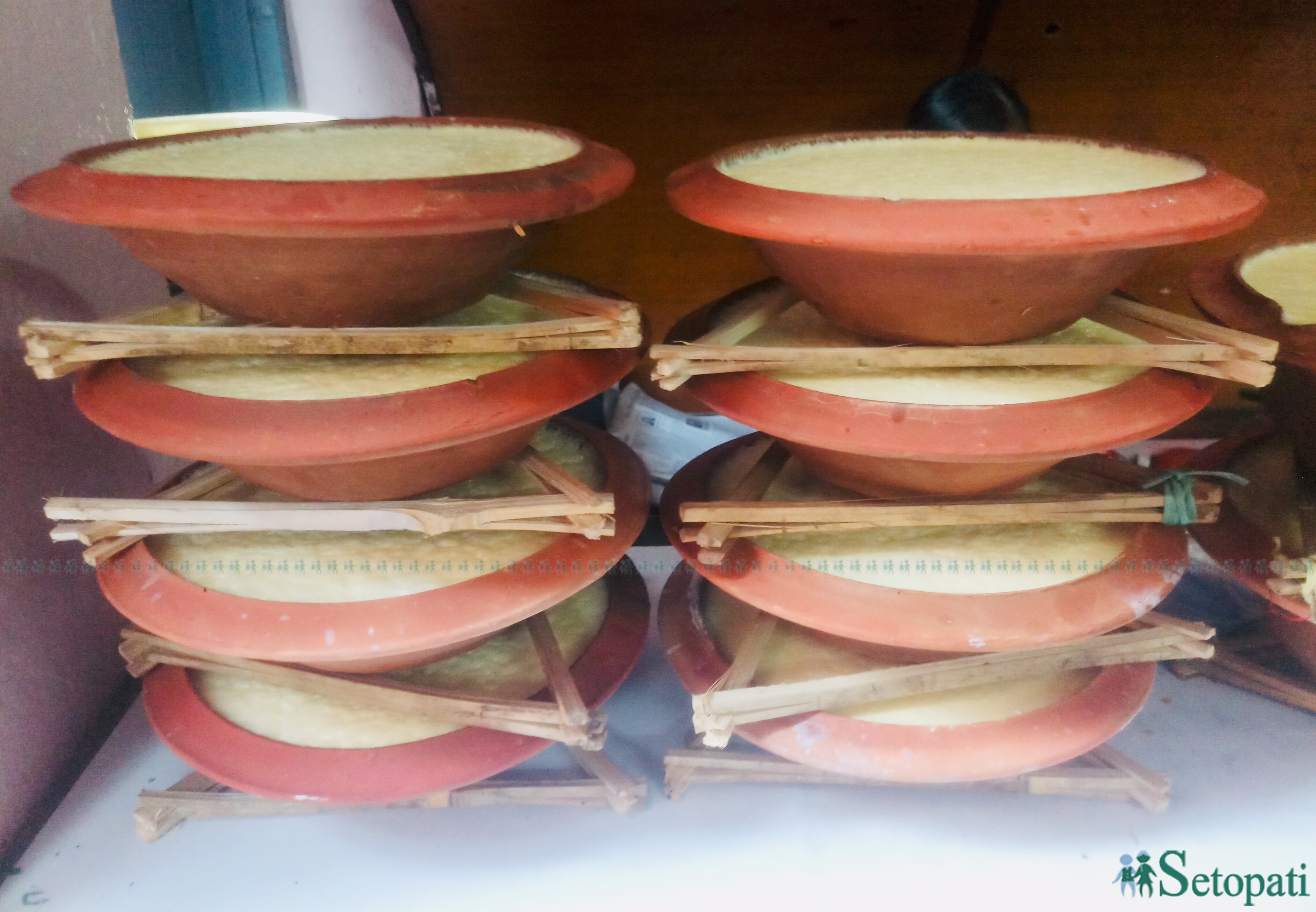 'दही जमाएको भाँडामुनि भुस राख्छौं भने माथिबाट सिरक, कम्बल लगायत कपडाले छोप्छौं,' उनले भने, 'यही नै परम्परागत जुजुधौ बनाउने तरिका हो।'