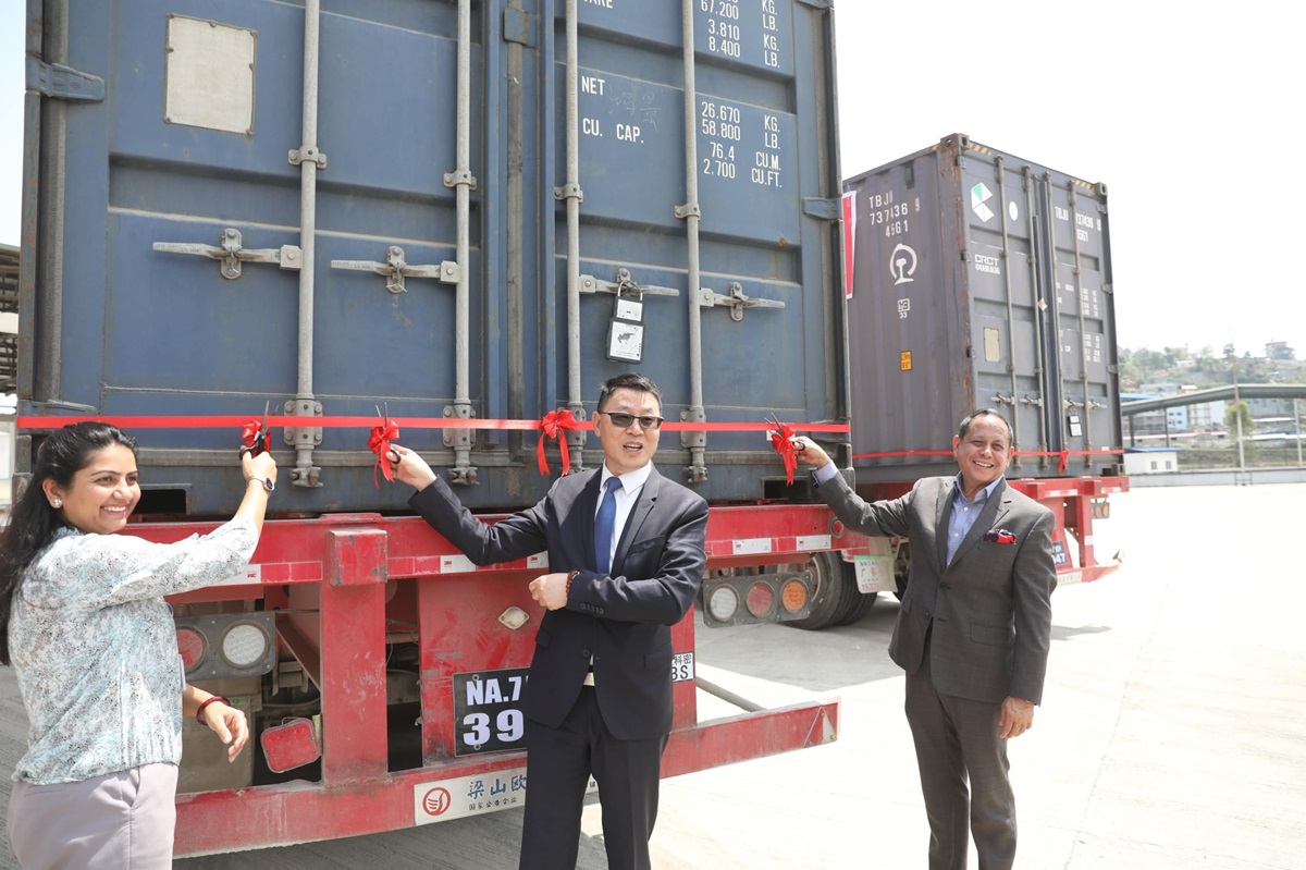 चीनको चहच्याङ प्रान्तको इयु सहरबाट नटस्टप रेलमार्ग र सडकमार्ग हुँदै नेपालमा पहिलो पटक सामान भित्रिएको छ।