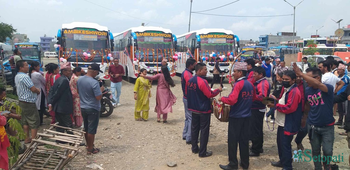 तर यो कुनै जन्तीको तामझाम थिएन। अम्बिकेश्वरी सार्वजनिक राप्ती यातायात प्रालिले आफ्ना सुपर लक्जरियस बस उद्घाटन गर्न आयोजना गरेको समारोह थियो।