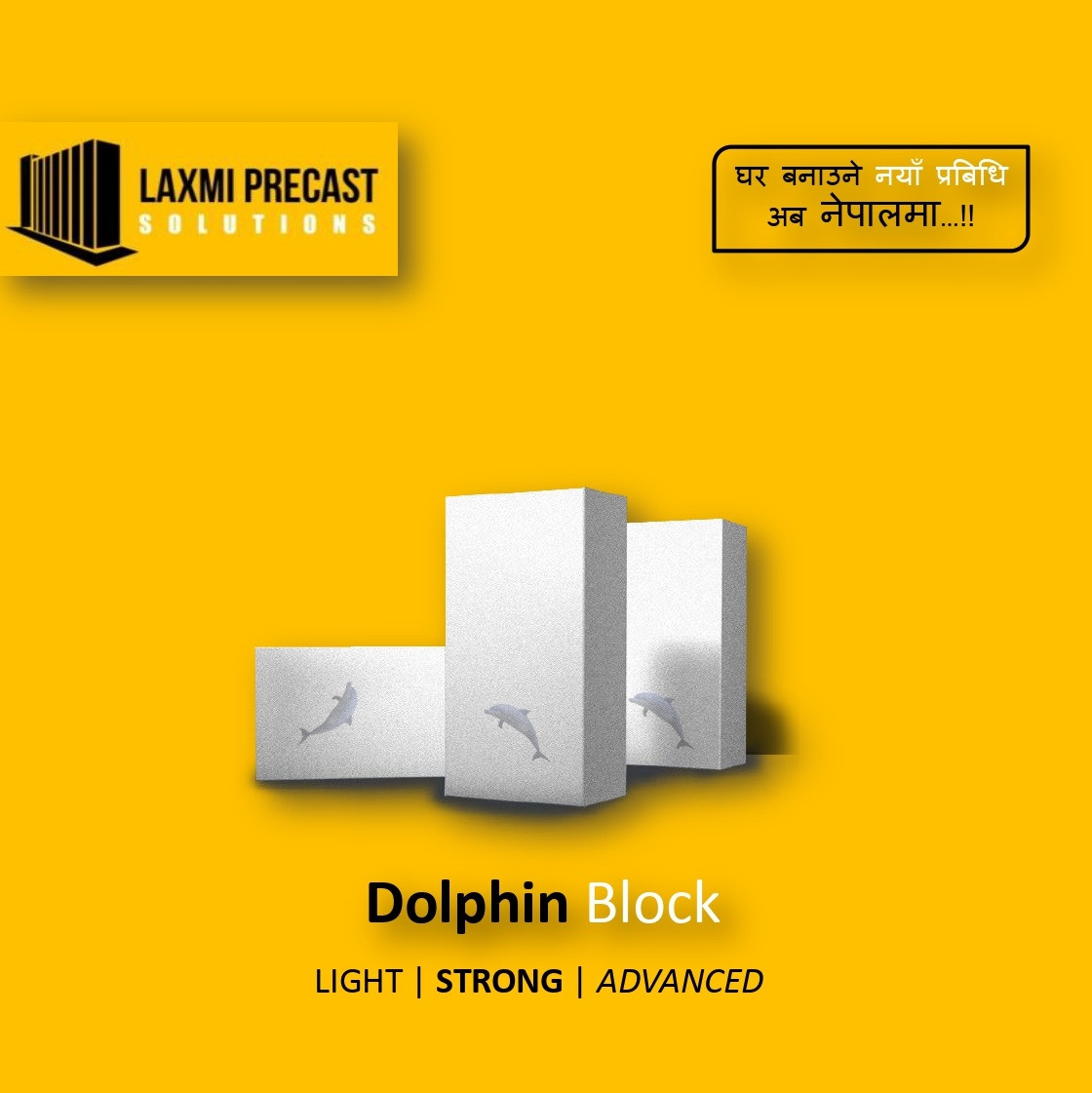 नेपाली बजारमा भवन निमार्णमा प्रयोग हुने नयाँ ब्लक आएको छ। लक्ष्मी प्रिकास्ट सोल्युसन्सले ल्याएको उक्त ब्लकको प्रयोगले ३० प्रतिशत सम्म निर्माण खर्च घटाउन सकिने कम्पनीले जनाएको छ। कम्पनीले उक्त ब्लकको नाम डल्फिन ब्लक सिएलसी दिएको छ ।