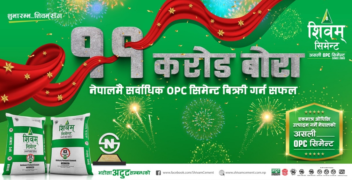 नेपालको ओपिसि सिमेन्ट उत्पादक कम्पनी शिवम् सिमेन्ट्सले ११ करोड बोरा सिमेन्ट बिक्री गर्दै नेपाल भरी सर्वाधिक बिक्री हुने ओपिसि सिमेन्ट बन्न सफल भएको छ।