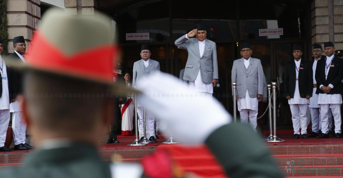 राष्ट्रपति पौडेललाई संसद भवनमा सभामुख देवराज घिमिरे, राष्ट्रिय सभाका अध्यक्ष नारायणप्रसाद दाहाल, प्रधानमन्त्री पुष्पकमल दाहाल प्रचण्ड लगायतले स्वागत गरेका छन्।