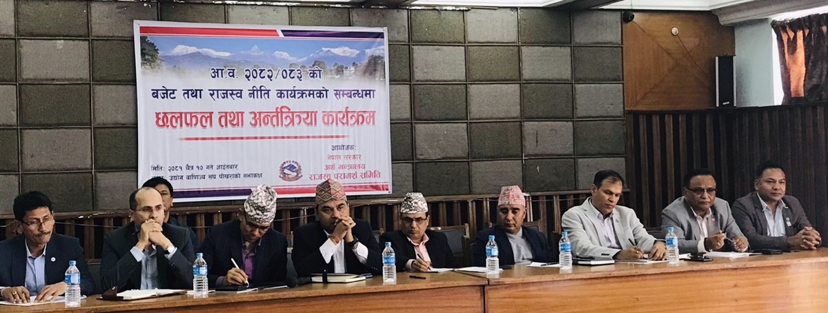 कार्यक्रममा व्यवसायीहरूले अर्थतन्त्रलाई चलायमान बनाउने गरी नीतिगत सुधार गर्न आग्रह गरेका छन्। व्यवसायीहरूले राजस्व नीतिलाई लगानी तथा व्यवसायमैत्री बनाउन सुझाव दिएका हुन्।