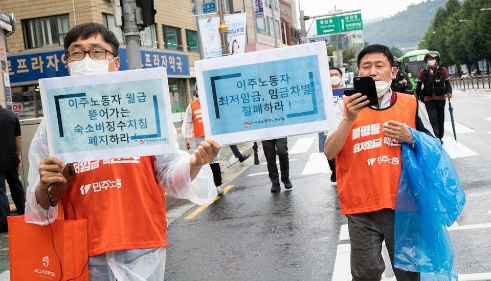 सबै श्रमिकको न्यूनतम पारिश्रमिक प्रतिघण्टा १० हजार वोन वृद्धि गर्नुपर्ने माग राख्दै प्रवासी मजदुर संगठन (एमटियु) र कोरियन प्रजातान्त्रिक मजदुर महासंघ (केसिटियु) ले बुधबार प्रदर्शन गरेका हुन्।
