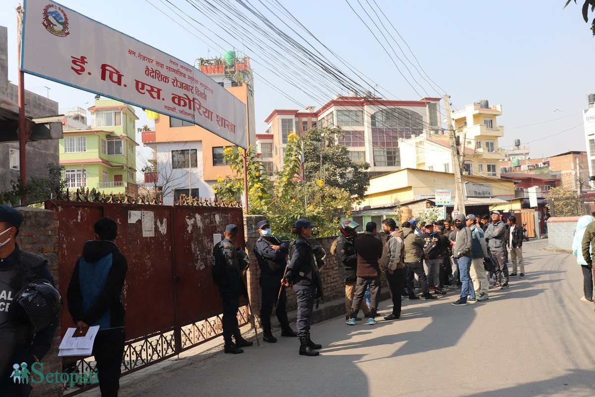 युवाहरूले दक्षिण कोरिया जान नपाएको भन्दै ललितपुर ग्वार्कोस्थित रोजगार अनुमति प्रणाली (इपिएस) कार्यालय घेराउ गरेका छन्।