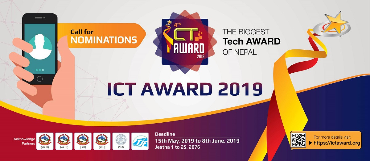 सूचना प्रविधि क्षेत्रको प्रतिष्ठित र ठूलो अवार्डका रुपमा चिनिएको ‘आइसिटी अवार्ड २०१९’ को अनलाइन नोमिनेशन जेठ १ गतेदेखि खुला भएको छ।