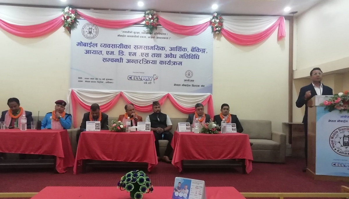 शुक्रबार मोबाइल व्यवसायीका समस्या र चुनौती लगायतका विषयमा आयोजित अन्तर्क्रिया कार्यक्रममा मोबाइल व्यवसायीहरूले सरकारलाई एमडिएमएस तत्काल लागु गर्न आग्रह गरेका हुन्।