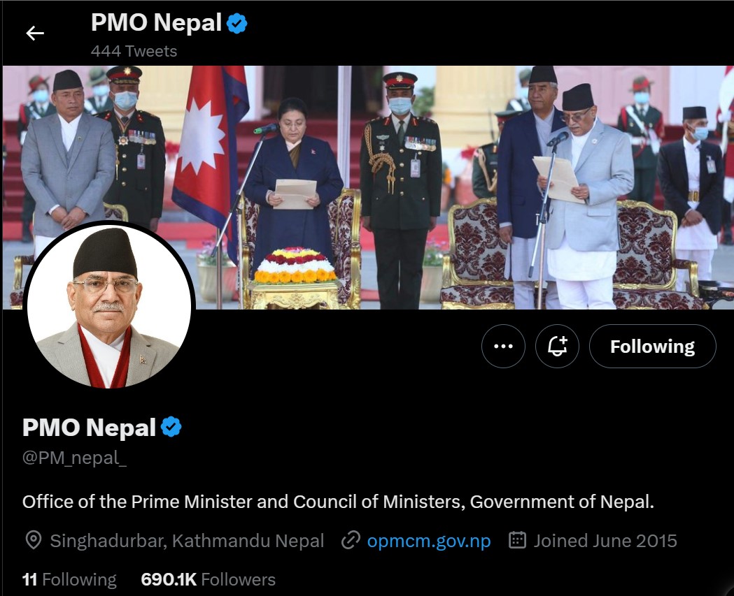 पिएमओ नेपालबाट विभिन्न असान्दर्भिक विषयबस्तु रि-ट्विट भएका छन्।
