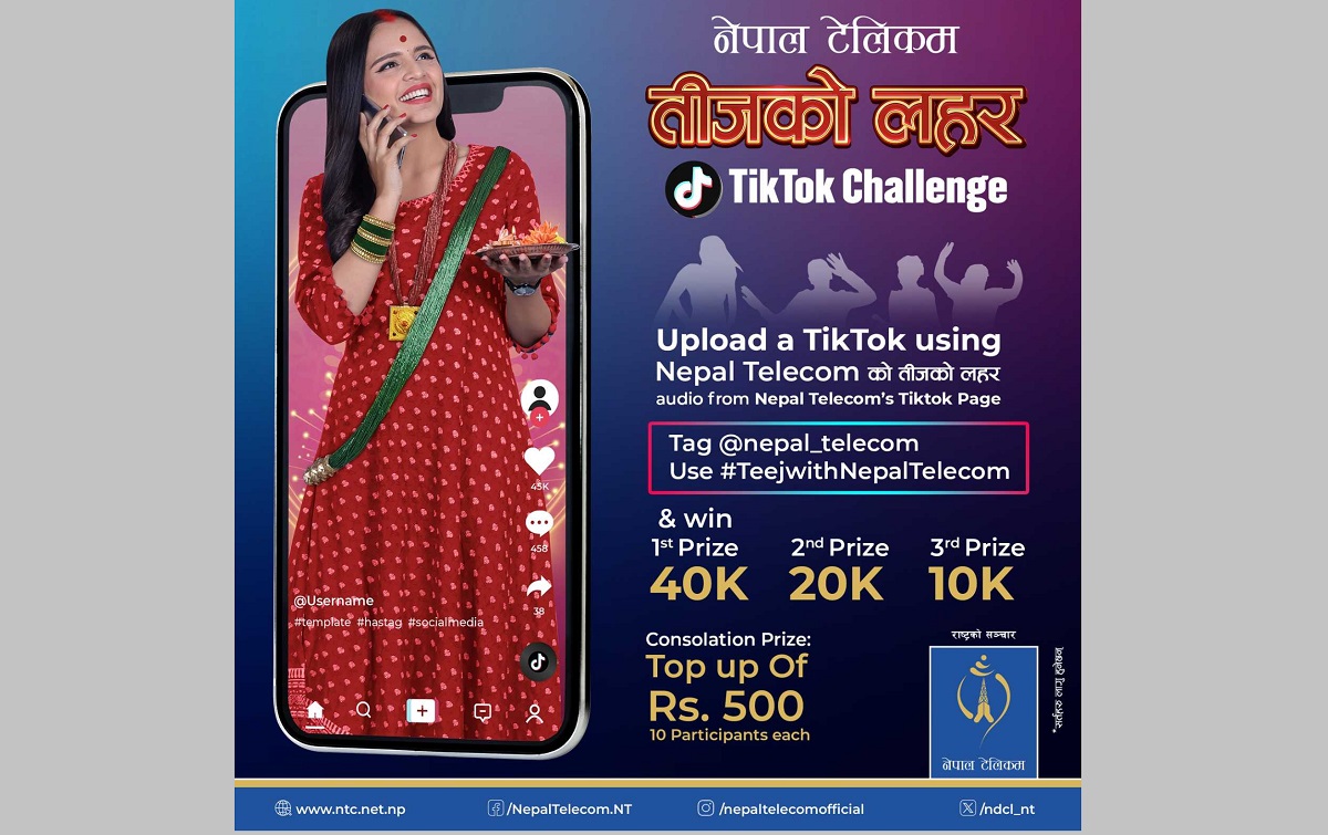 नेपाल टेलिकमले ‘नेपाल टेलिकम तीजको लहर टिकटक च्यालेन्ज’ सञ्चालन गरेको छ।
