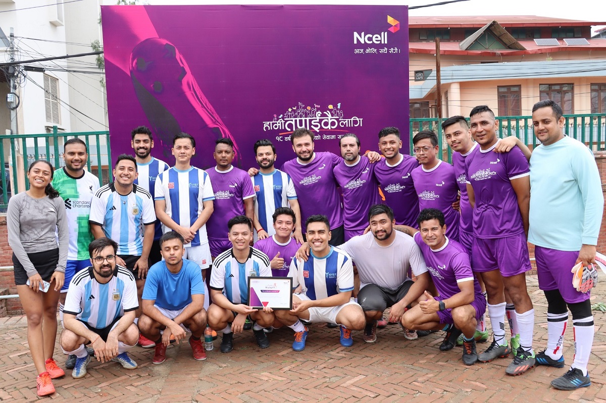 एनसेल आजियाटा लिमिटेडले आफ्नो १८औं वार्षिकोत्सवको अवसरमा काठमाडौंको लैनचौर खेलमैदानमा 'पर्पल किकअफ' मैत्रिपूर्ण फुटबल खेल आयोजना गरेको छ।