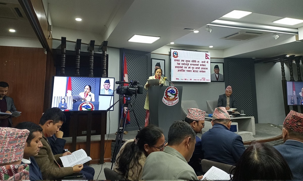 मन्त्री शर्माका अनुसार सुरक्षण मुद्रण सम्बन्धी विधेयक र सार्वजनिक सेवा प्रसारण विधेयक संघीय संसदको समितिमा छलफलको क्रममा छन्। नेपाल मिडिया काउन्सिल सम्बन्धी विधेयकको मस्यौदामा अर्थ मन्त्रालयको सहमति लिई कानुन, न्याय तथा संसदीय मामिला मन्त्रालयमा सहमतिको लागि पठाइएको छ। आमसञ्चार विधेयकको मस्यौदा र सामाजिक सञ्जाल (व्यवस्थापन तथा नियमन) विधेयकको मस्यौदा तयार भई अर्थ मन्त्रालयमा सहमतिको लागि पठाइएको छ।
