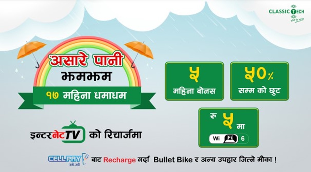 क्लासिक टेकले रिचार्जमा वर्षात अफर सार्वजनिक गरेको छ।