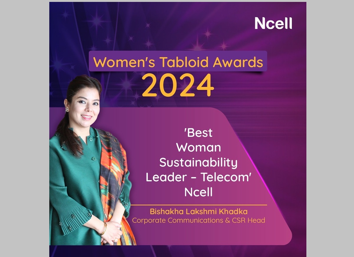 एनसेलकी कर्पोरेट कम्युनिकेसन्स एन्ड सिएसआर हेड विशाखा लक्ष्मी खड्का बेलायतको वुमन्स ट्याब्लोइडले प्रदान गरेको 'वुमन्स् ट्याब्लोइड अवार्ड्स २०२४' बाट सम्मानित भएकी छिन्।