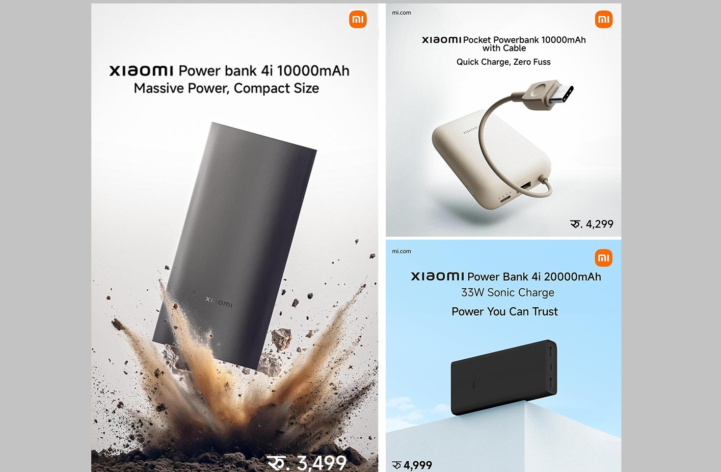 २२.५ वाटको फास्ट चार्जिङसहितको शाओमी पावर बैंक ४ आई १०००० एमएएच ३ हजार ४९९ रूपैयाँमा उपलब्ध छ भने ३३ वाटको सोनिक चार्जसहितको शाओमी पावर बैंक ४ आई २०००० एमएएच ४ हजार ९९९ रूपैयाँमा उपलब्ध छ।