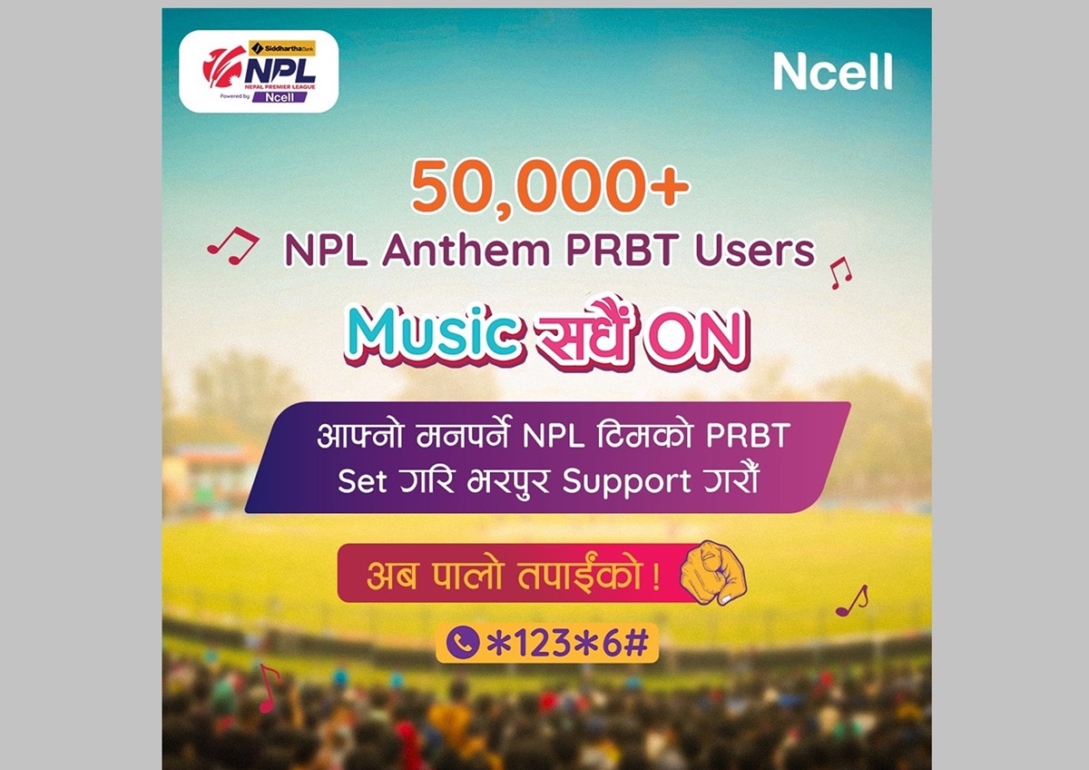 बिहीबारसम्म, ५० हजारभन्दा बढी एनसेल ग्राहकहरूले एनपिएलका विभिन्न टिमहरूको थिम गीतलाई आफ्नो पिआरबिटीका रूपमा राखिसकेका छन्।