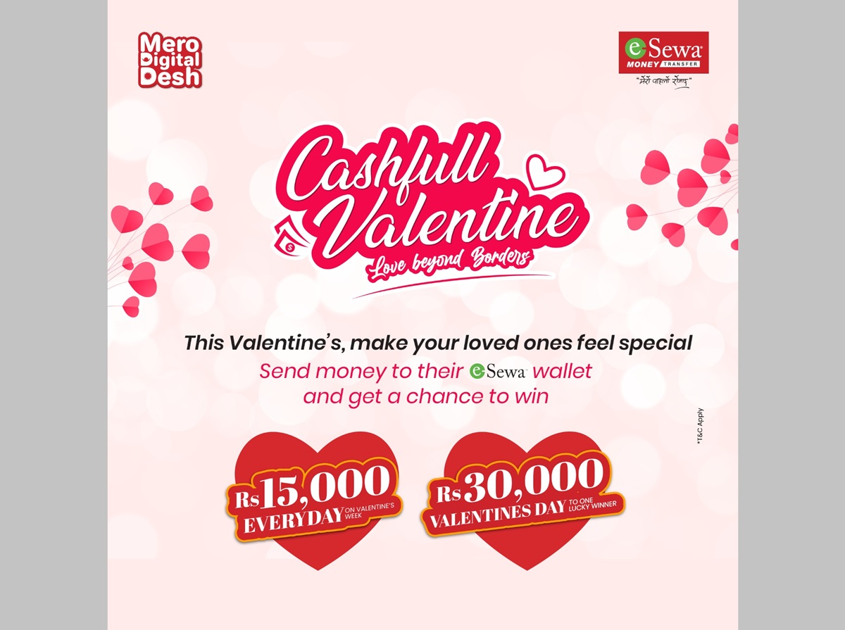 नेपालको डिजिटल रेमिटेन्स सेवा प्रदायक इसेवा मनी ट्रान्सफरले विशेष ‘क्यासफुल भ्यालेन्टाइन’ अभियान सार्वजनिक गरेको छ।