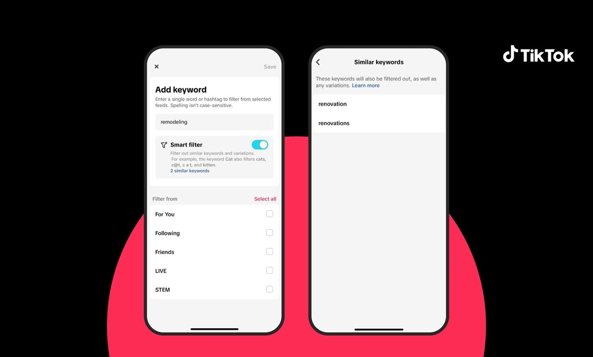 टिकटकले अहिले स्मार्ट किवर्ड फिल्टर्सको सुविधा पनि ल्याएको छ, जुन एआई प्रविधिमा आधारित छ।