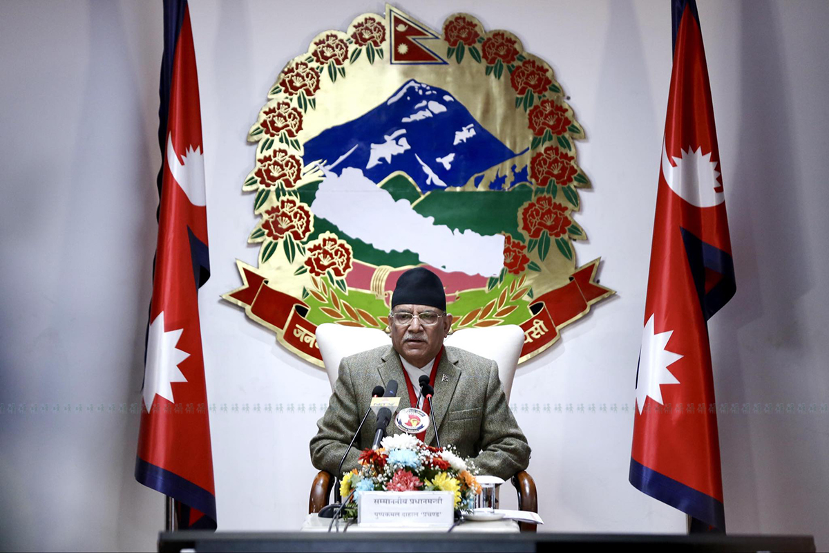 मंगलबार राष्ट्रका नाममा सम्बोधन गर्दै प्रधानमन्त्री प्रचण्डले सरकारले ठूला जलविद्युत आयोजना विकासमा जोड दिइरहेको बताए।