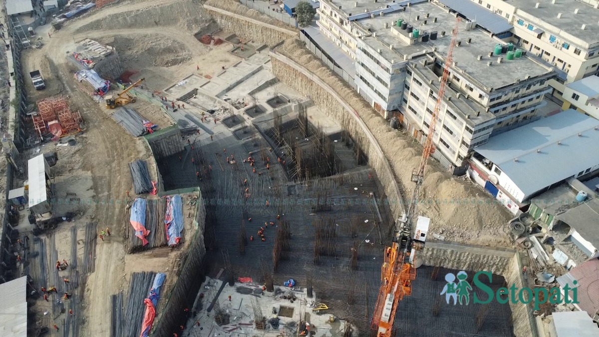 अहिले काम भइरहेको भाग सबभन्दा तल्लो बेसमेन्ट हो। यसका लागि छड बुन्ने, बिच्छ्याउने, पिलर उठाउने र भुइँ ढलान गर्ने काममा २१० जना कामदार खटिएका छन्।