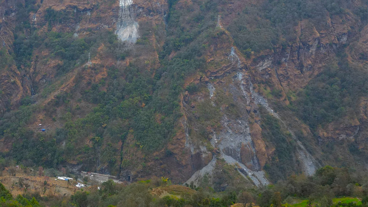 दग्नाम गाउँको फेदीमा सिर्जना भएको नयाँ पहिरो राहुघाट जलविद्युत् आयोजनाको बाँधको सिधा माथि छ।