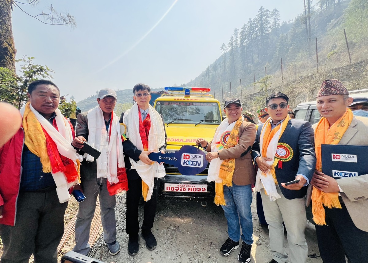 आयोजनाको प्रवर्द्धक नेपाल वाटर एण्ड इनर्जी डेभलपमेन्ट कम्पनीका प्रमुख कार्यकारी अधिकृत (सिइओ) बायोङ सु मिनले सोमबार एम्बुलेक्सको चाबी गाउँपालिकाका अध्यक्ष बुचुङ तामाङलाई हस्तान्तरण गरे।