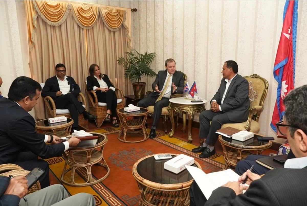 ऊर्जा, जलस्रोत तथा सिँचाइ, भौतिक पूर्वाधार तथा यातायात एवं सहरी विकास मन्त्री कुलमान घिसिङ र नेपालस्थित बेलायतका राजदूत रब फेनबीच भेटवार्ता भएको छ।