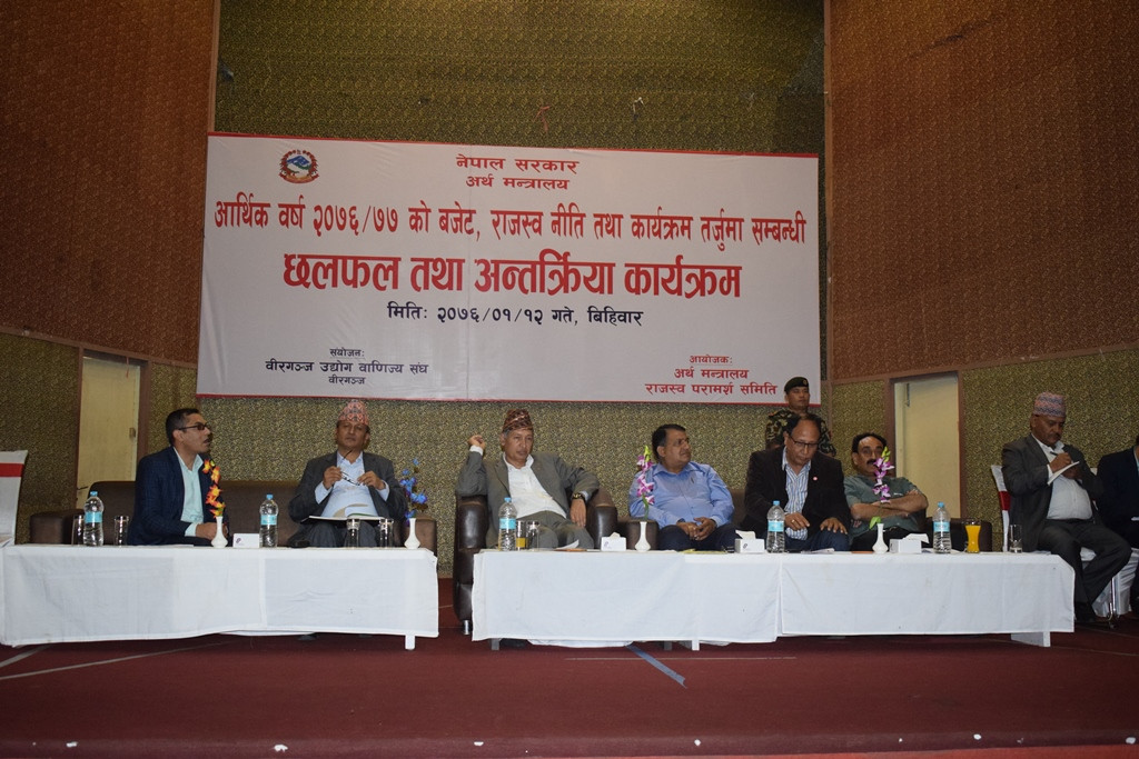 अर्थमन्त्रालयको राजस्व परामर्श समितिले बिहीबार वीरगञ्जमा आयोजना गरेको आर्थिक वर्ष २०७६÷७७ को बजेट, राजस्व नीति तथा कार्यक्रम तर्जुमासम्बन्धी अन्तरक्रियामा अर्थमन्त्री खतिवडाले यस्तो धारणा व्यक्त गरेका हुन्।