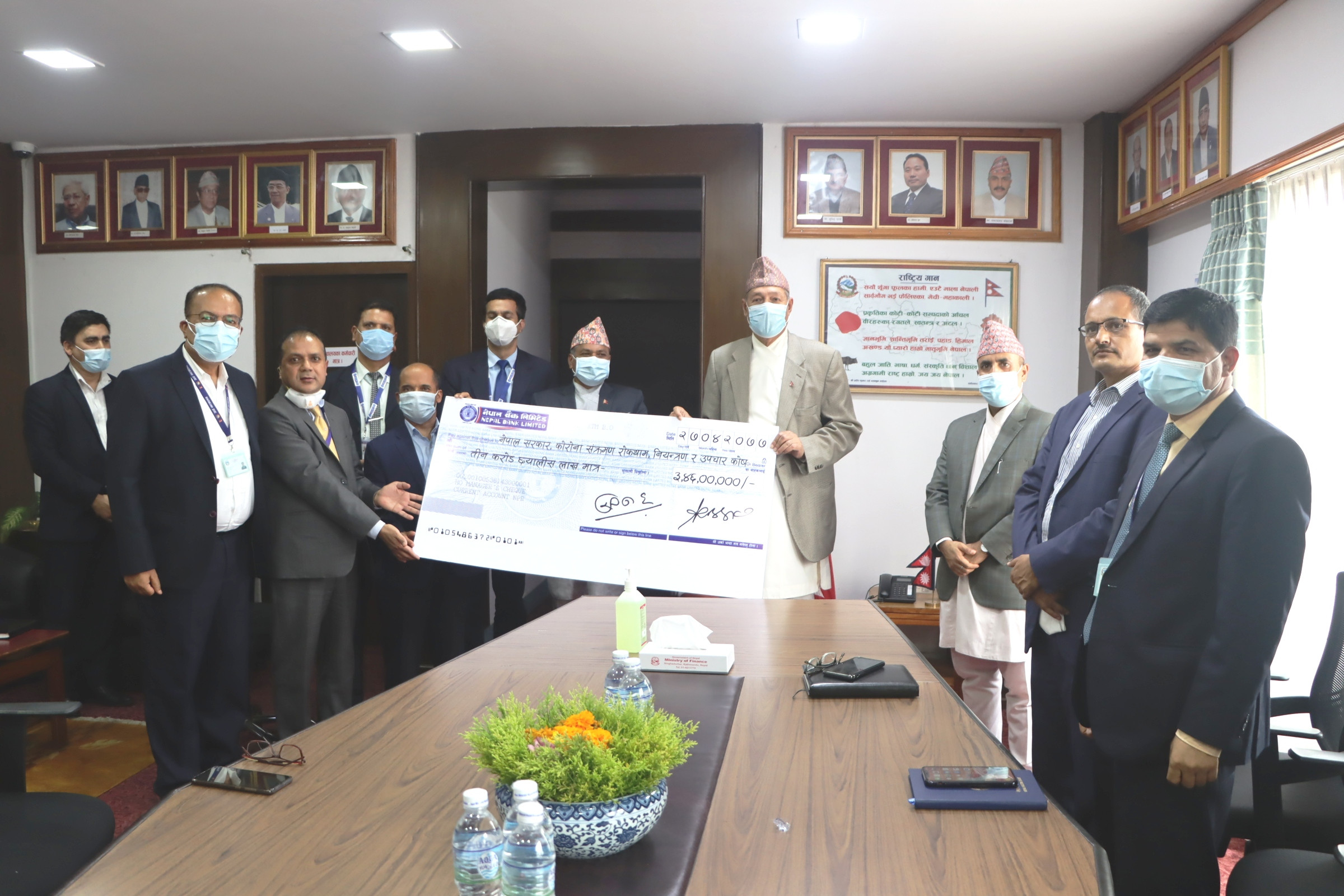 नेपाल सरकारले स्थापना गरेको उक्त कोषमा जम्मा हुनेगरी अर्थमन्त्री डा.युवराज खतिवडालाई सो बैंक सञ्चालक समितिका अध्यक्ष वासुदेव अधिकारीले सहयोग रकम हस्तान्तरण गरेका हुन्।