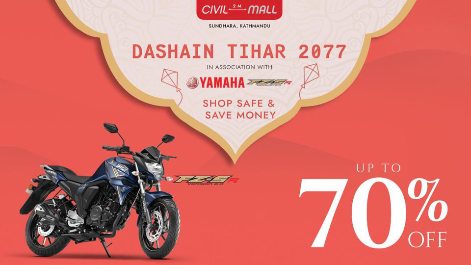 सिभिल मलले दसैं-तिहारमा सपिङ गर्ने उपभोक्ताहरूलाई लक्षित गरेर आकर्षक उपहार घोषणा गरेको छ। जसअन्तर्गत यामाहाको एफजेड बाइकदेखि होम एप्लियन्स र गिफ्ट भौचर छन्।