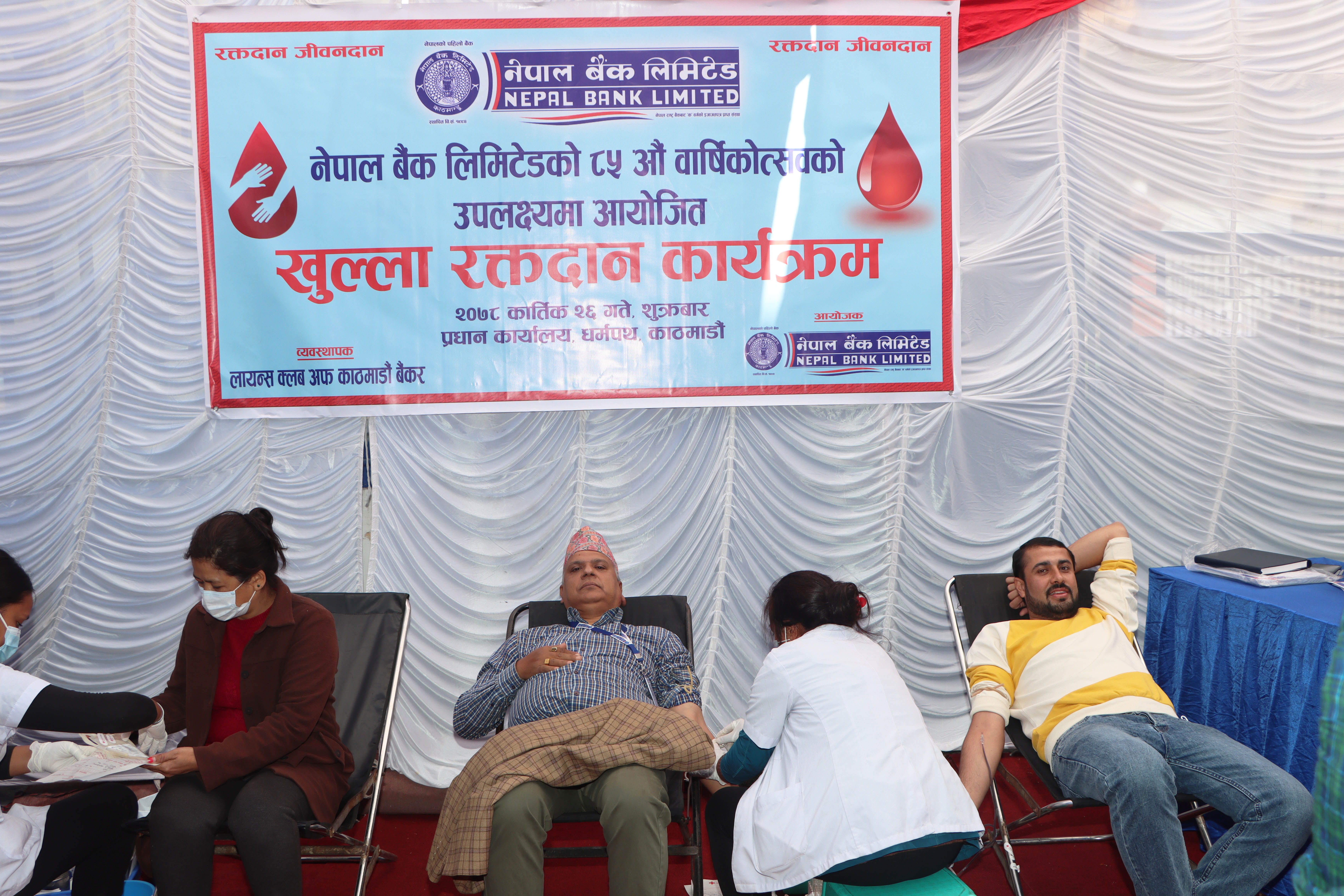 बैंक तथा लायन्स क्लब अफ काठमाडौं बैंकरको सहयोगमा उक्त रक्तदान कार्यक्रम सम्पन्न भयो।