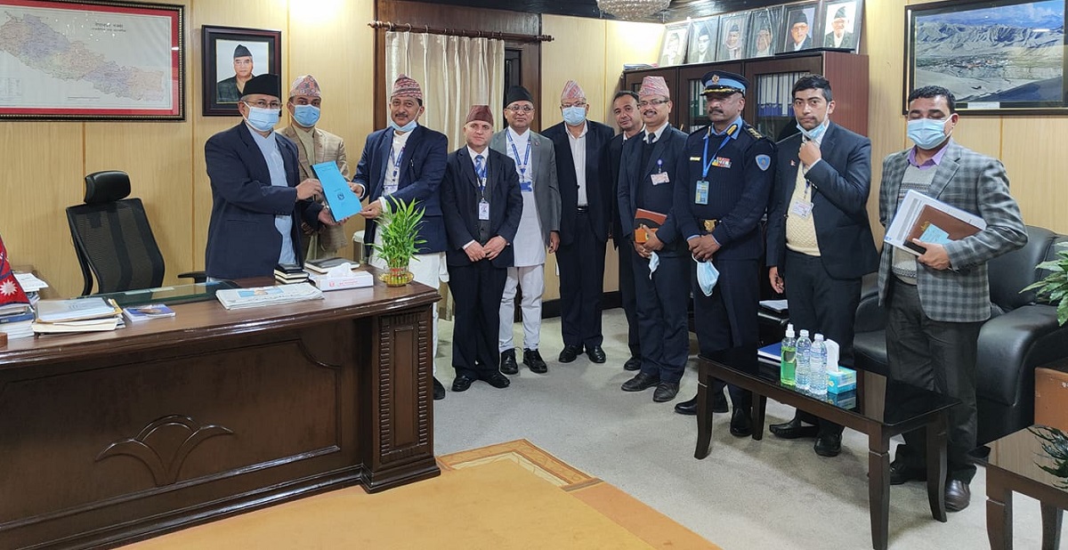 बुधबार भिजिट भिसा र सोबाट सिर्जित समस्या तथा समाधानका उपायहरू सम्बन्धमा सिफारिस गर्न गठित कार्यदलले गृहमन्त्री बालकृष्ण खाणलाई आफ्नो अध्ययन प्रतिवेदन बुझाएको हो। मन्त्रालयमा आयोजित कार्यक्रममा कार्यदलका संयोजक तथा प्रवक्ता पोखरेलले प्रतिवेदन बुझाएका हुन्।