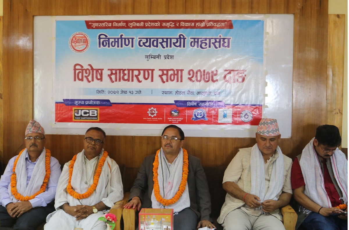 शुक्रबार दाङको भालुबाङमा आयोजित निर्माण व्यवसायी महासंघ लुम्बिनी प्रदेशको विशेष साधारण सभामा महासंघका बाँके जिल्लाका अध्यक्ष टेकबहादुर खड्काले बढ्दो महंगीका कारण व्यवसायी बाँच्न सक्ने अवस्था नरहेको बताए।