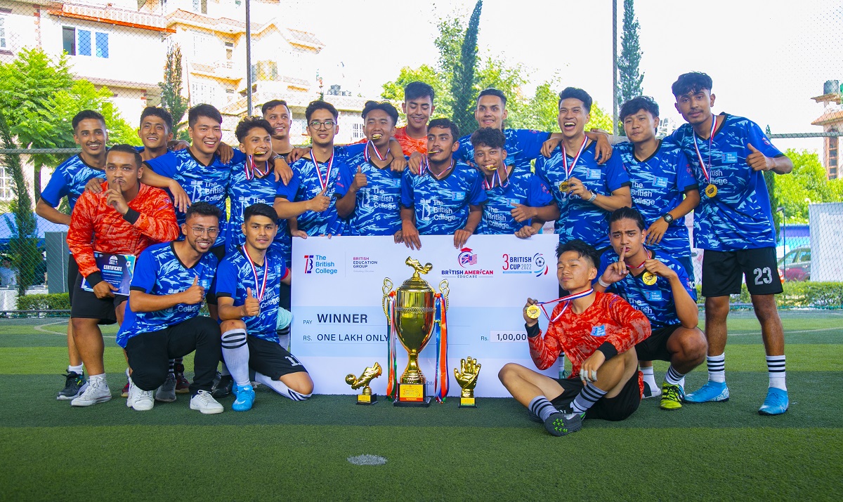 द ब्रिटिस कलेजको आयोजनामा ‘तेस्रो द ब्रिटिस कप २०२२’ इन्टर कलेज फुटसल टोर्नामेन्ट कार्यक्रम सम्पन्न भएको छ।उक्त टोर्नामेन्टमा काठमाडौंका विभिन्न १३ वटा कलेजहरूबीच फुटसल प्रतियोगिता भएको थियो।