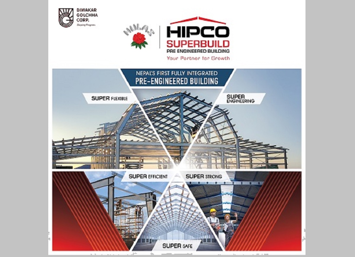 हुलास स्टिल इण्डष्ट्रिजद्वारा नेपालको पहिलो पिइबी (प्रि–इन्जिनियर विल्डिङ्स)को उद्यम गर्ने संस्थाको रूपमा रहेको हिप्को इन्फ्राबाट नयाँ उत्पादन सुरू गरेको छ।