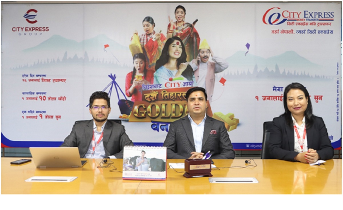 सिटी एक्सप्रेस मनी ट्रान्सफरले 'विदेशबाट सिटी आयो, दशैं तिहारलाई गोल्डेन बनायो' अफर सार्वजनिक गरेको छ ।