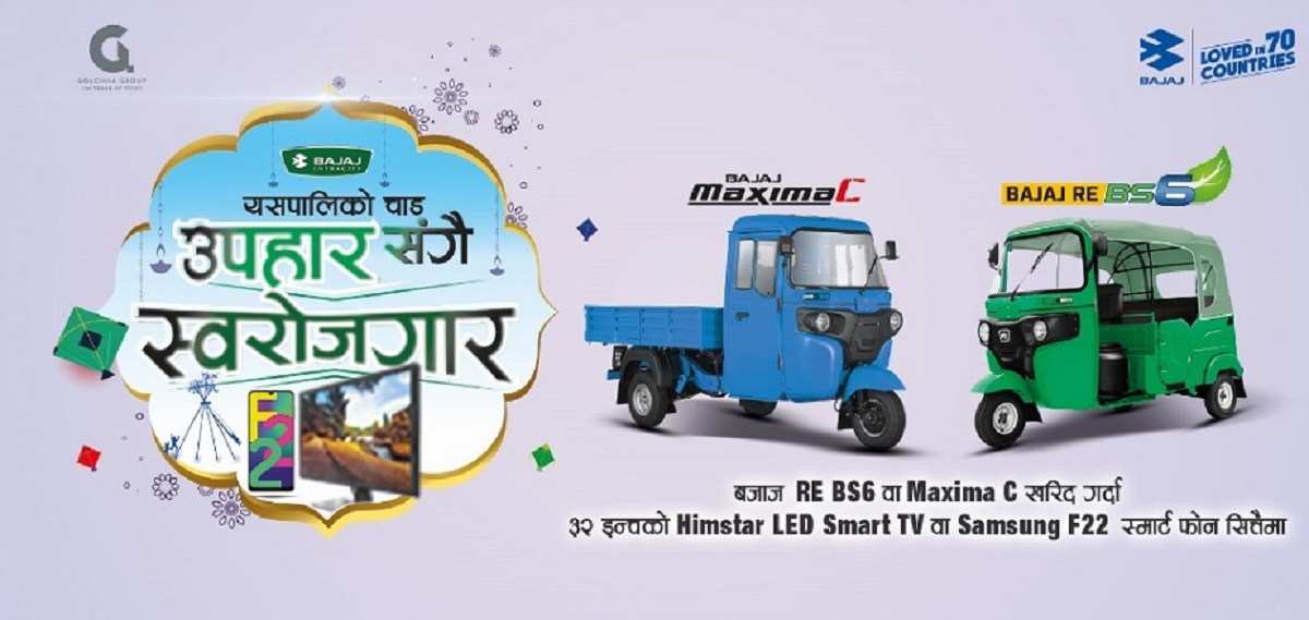 बजाज थ्री ह्वीलर्सको एक मात्र वितरक, हंसराज हुलास चन्द एण्ड कम्पनीले दशैं-तिहारको अवसरमा छुट अभियान सुरू गरेको छ ।