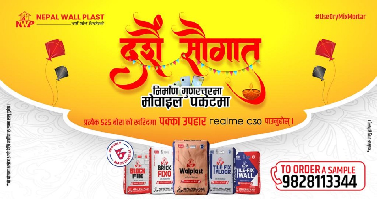 ड्राइ मिक्स मोर्टार उत्पादक नेपाल वाल प्लास्टले दशैंलाई लक्षित गरेर 'दशैं सौगात' नामक योजना बजारमा ल्याएको छ ।