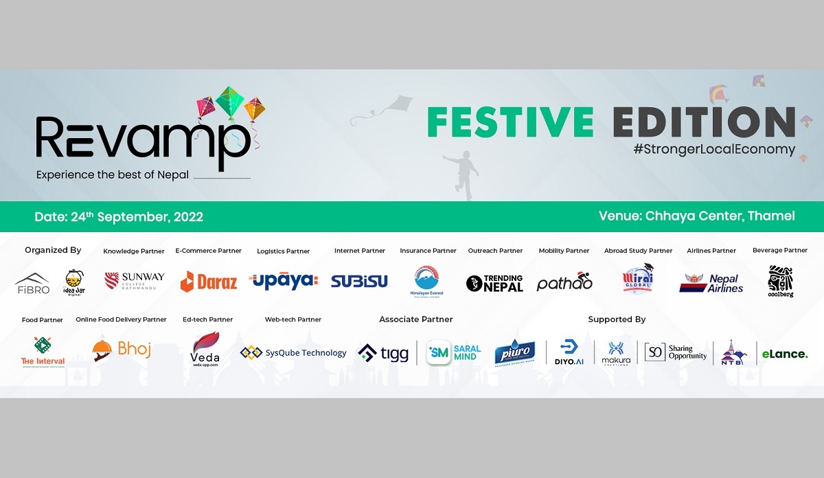 फाइब्रो नेपालले आइडियाजार डिजिटलसँगको सहकार्यमा 'रिभ्याम्प नेपाल फेस्टिभ इडिसन' आयोजन गर्दैछ। रिभ्याम्प फेस्टिभ इडिसन प्रदर्शनी र नेटवर्किङ कार्यक्रम हो। यो एक दिने कार्यक्रम भोलि शनिबार ठमेलको छायाँ सेन्टरमा हुँदैछ।