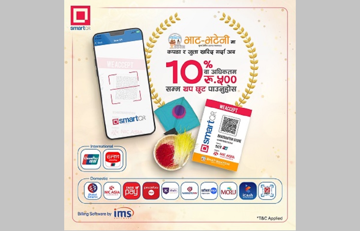 विजया दशमीलाई लक्षित गर्दै स्मार्ट क्युआरले भाटभटेनी र एनआइसी एशिया बैंकसँगको सहकार्यमा बडा छुट अफर सार्वजनिक गरेको छ।