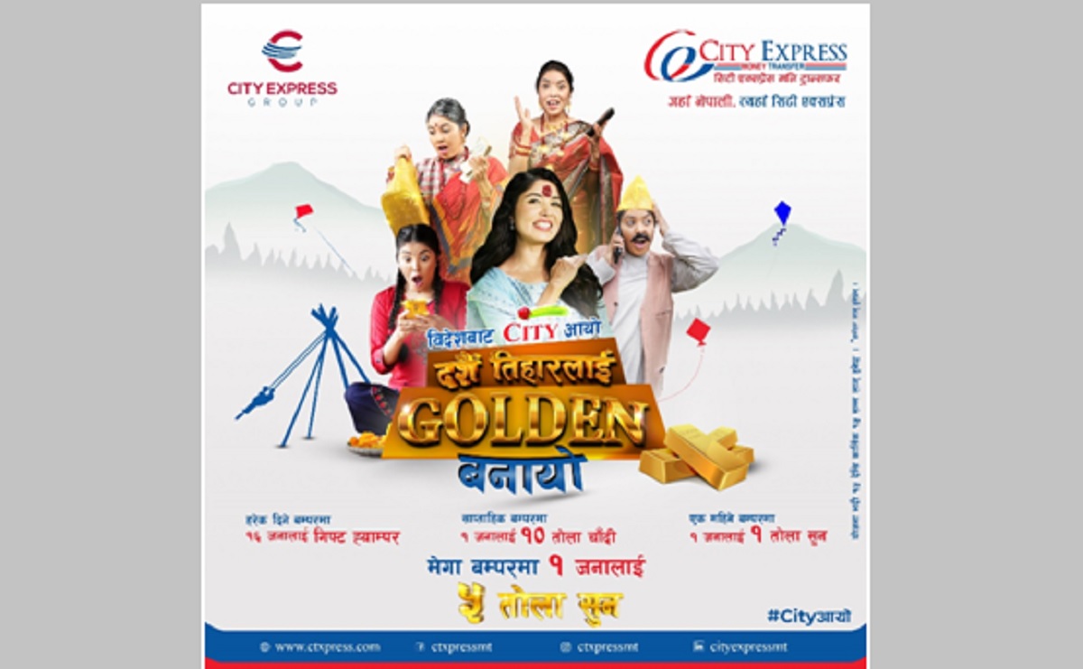 सिटी एक्सप्रेस मनी ट्रान्सफरले गत भदौ १५ गते नेपालीहरूको महान चाड दसैं, तिहार र छठलाई लक्षित गर्दै ग्राहकसँग पर्वको खुशी साट्न लगातार ६३ दिनसम्म चल्ने 'विदेशबाट सिटी आयो, दसैं तिहारलाई गोल्डेन बनायो' उपहार योजना घोषणा गरेको थियो।